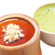 [揚物・唐揚げ] 蓮根万十(1ヶ) 750円 [チヂミ] お餅と韓国のりチヂミ 650円 [煮物・蒸し物] 合鴨と生麩の治部煮 780円 [釜飯] 鰻のひつまぶし風釜飯 850円 [飯・麺物] とびっ子と韓国のりの天むす(2ヶ) 580円 [甘味] カスタードバナナパイバニラアイス添え 580円 |
